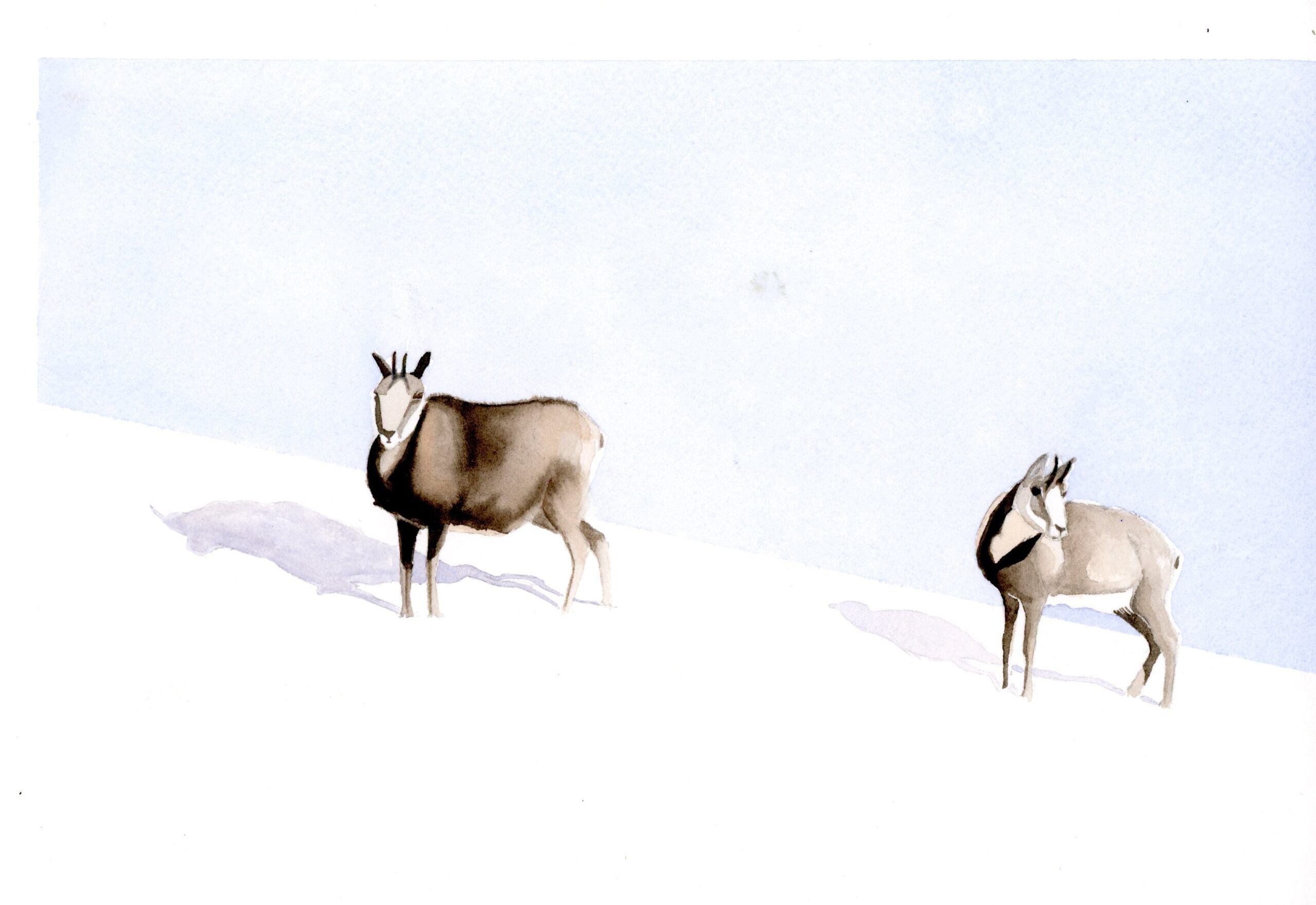 Estos rebecos corresponden a un rebaño mayor que pude observar en el alto del pueblo de Fuente De, en el Parque Nacional de Picos de Europa.