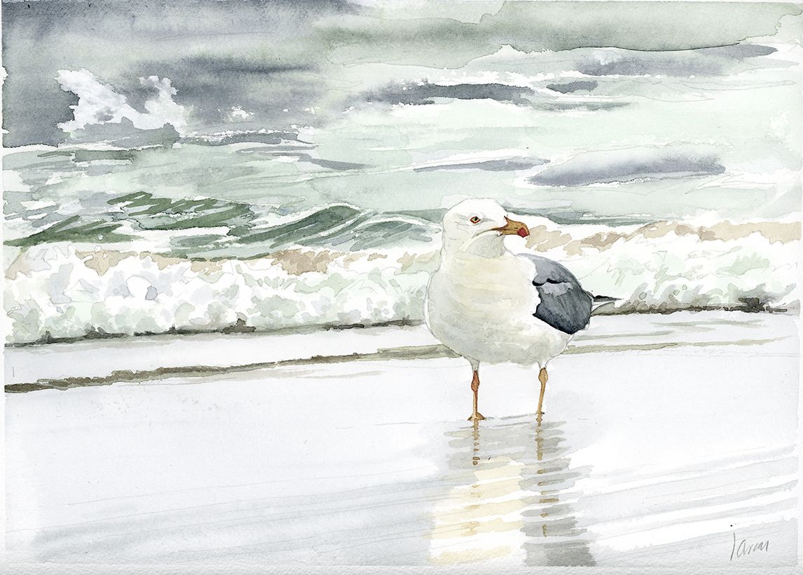 Una acuarela más de gaviotas, las aves que, junto a las limícolas y larolimícolas, me gustan más.