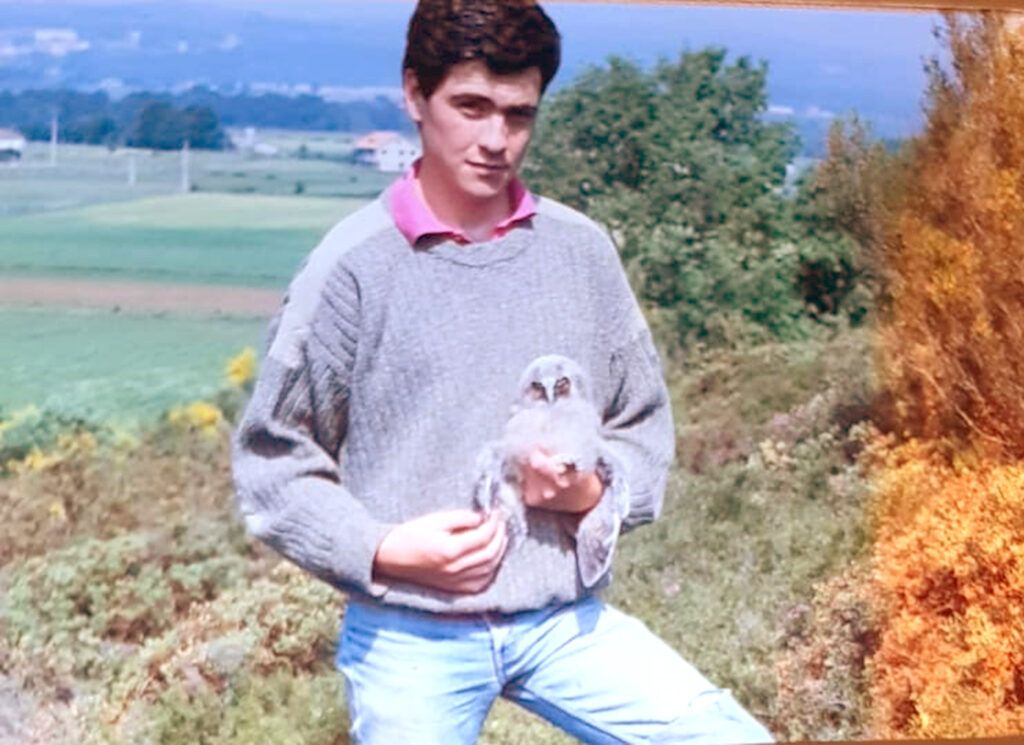 Yo, anillando pollos de Búho chico allá por el año 1990.