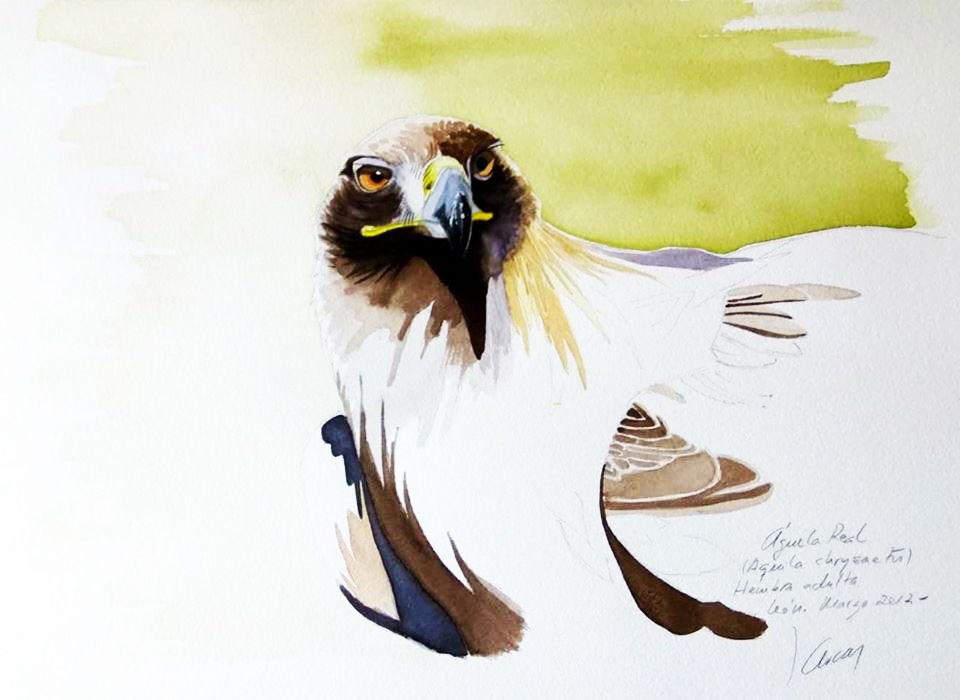 Retrato de la reina de las aves, el Águila Real, Aquila chrysaetos adalberti. Acuarela sobre papel Canson Mou...