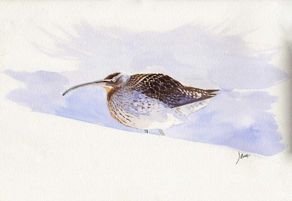 Zarapito trinador contra el viento.